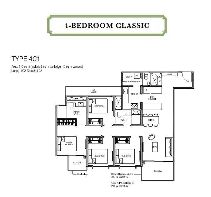 四卧室,套内面积111平方米(1204平方尺)至126平方米(1356平方尺),整套售价从S$209.8多万新元起。