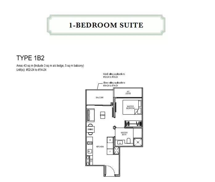 一卧室,套内面积43平方米(463平方尺)至47平方米(503平方尺),整套售价从S$91.9万新元起。