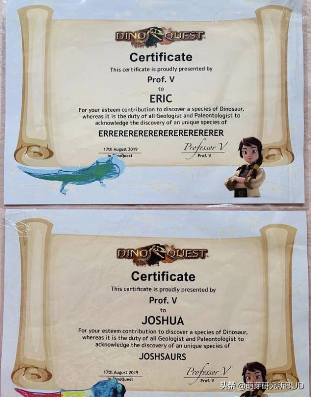 最后还获得了一个证书,证明自己真的有孵化两只恐龙。看到自己的名字,孩子们都乐得笑开了花。