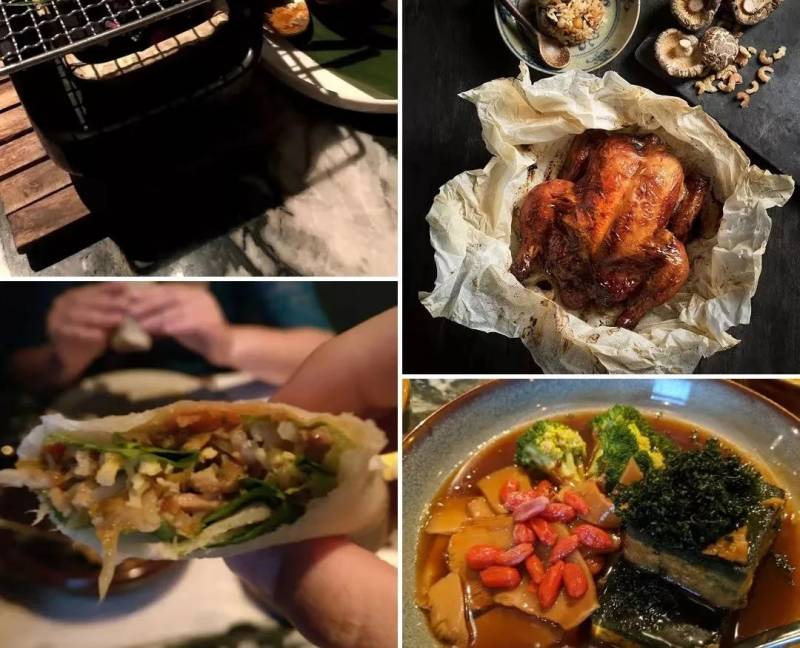 餐厅最主打的便是新加坡薄饼,而它需要食客的参与完成最后一道工序,将所有烹饪好的食材按照步骤介绍卷起来,这样能够使食客更加深入感受新加坡传统文化的美妙。纸包鸡是餐厅的招牌菜,整只鸡用酱汁与料酒腌制过夜,第二天再在填充、上釉后慢烤和大火烤多次。这道菜的做法颇为传统复杂,确保每一份食材都在保留原味的同时又能达到和谐。