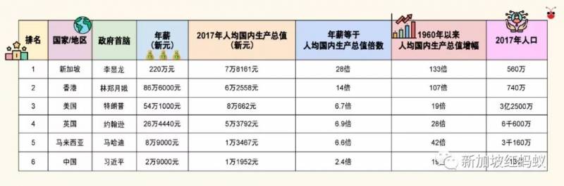 蚁粉应该有发现上述图表同时也列入人均国内生产总值(GDP Per Capital)和政府首脑年薪是人均国内生产总值几倍的数据。