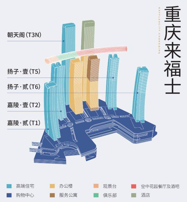 涵盖高端住宅、购物中心、办公楼、酒店和服务公寓五大核心业态,独有的水晶连廊更是拥有观景台、俱乐部、空中花园餐厅及酒吧三大特别业态。