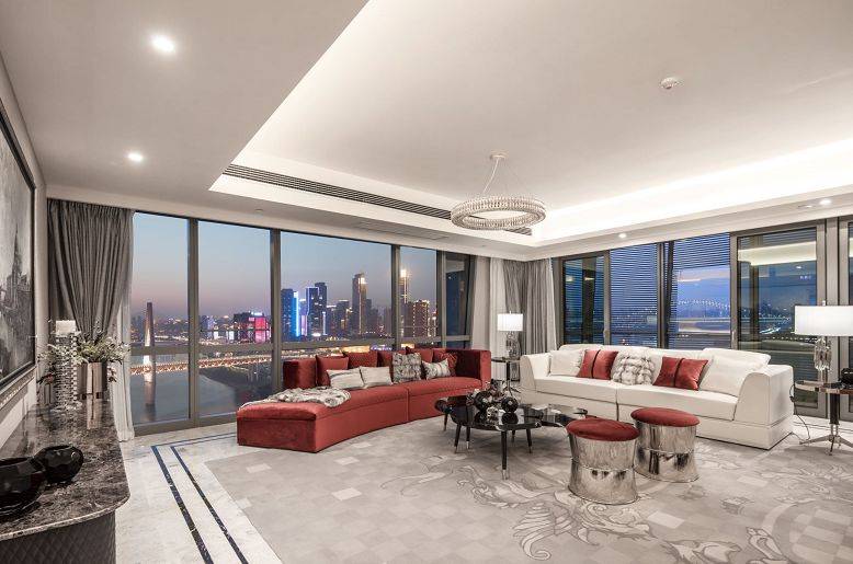 重庆来福士采用帆船造型曲线,创造罕见弧形设计,让业主尽享恢弘的两江交汇景观,成就重庆的城市会客厅。