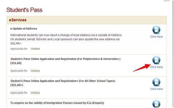 登陆 Immigration & Checkpoints Authority of Singapore ,并切换到 student’s pass 界面;