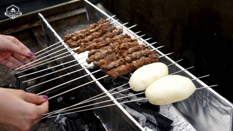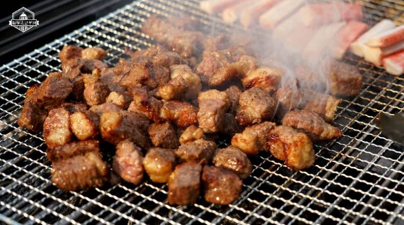 物品归置好,炭火生起来,一切准备就绪,等待同学们的到来~连牛肉都是现场调味腌制的哦!不敢说我们的大厨是专业出身,但是味道一流!