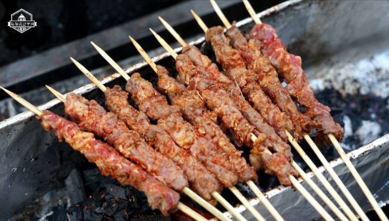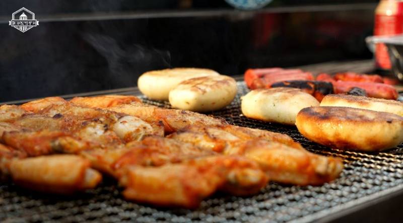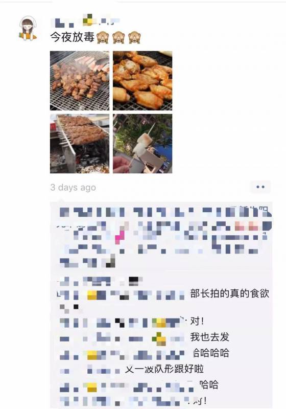 一边吃烤串一边喝着冰镇饮料聊天,惬意~