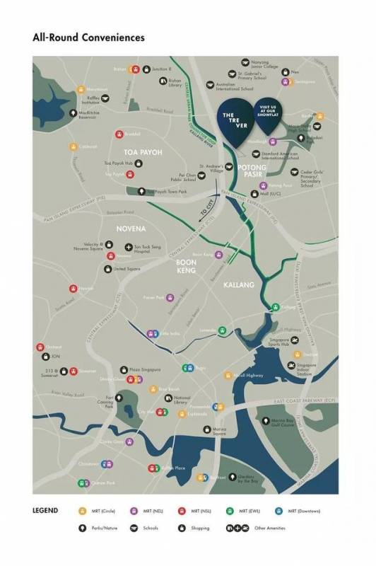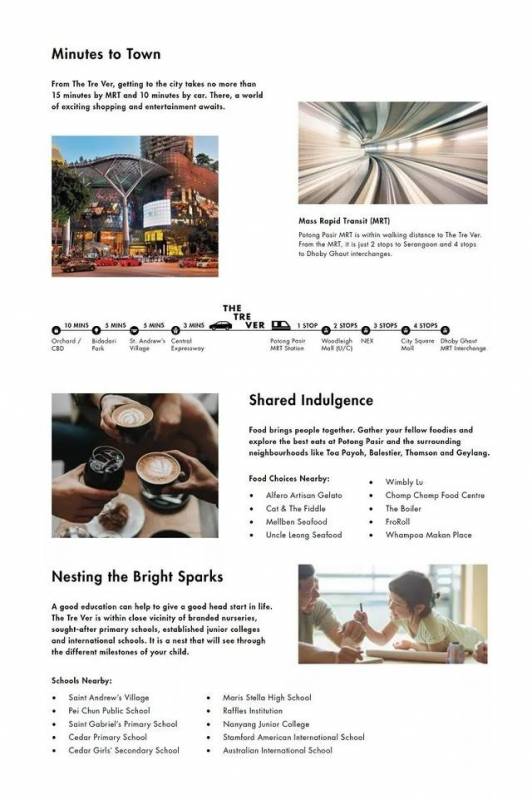 从The Tre Ver公寓步行约10分钟即可抵达东北线的波东巴西地铁站(Potong Pasir MRT)。该地铁站距离多美歌地铁站 (Dhoby Ghaut MRT)只有4个站,还可轻易转换到小印度地铁转换站(Little India)和地铁环线(实龙岗地铁站)。