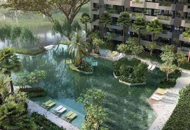 82%的住户可以欣赏泳池或河畔景观,24个单元可以享用绿色露台(Green terrace),260个住户可以有绿色门厅(Green foyer),享受更新鲜的空气,更好的景观和气候条件。