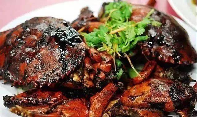 黑胡椒蟹是中餐和西餐相结合的一种创新菜,有炒和烤两种。黑胡椒香料恰如其分地渗入肉中,有新加坡菜典型的口味浓郁的风格。