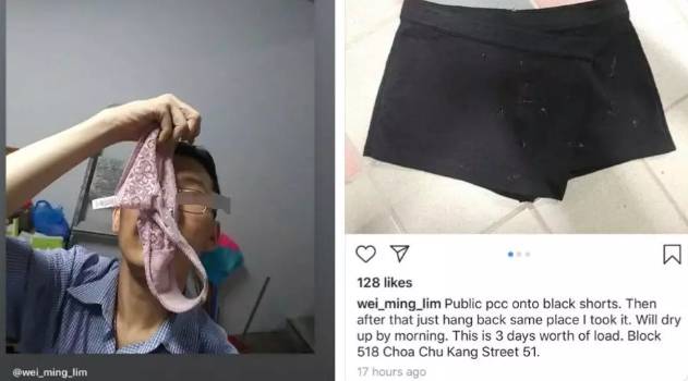 这货居然公然在社交媒体上传其偷窃女性内裤的图片...