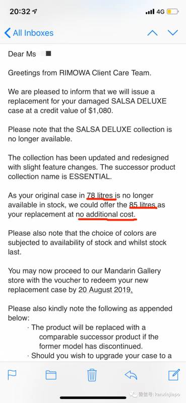 一周后,我收到了邮件,没想到我之前买的箱子已停产,箱子修不了,于是他们直接给我一个新箱子!是的,免费的新箱子!