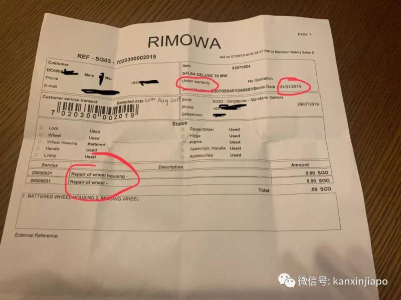 新加坡眼收到网友来函,她在新加坡买的日默瓦(Rimowa)箱子摔掉了轮子,拿去店里修,没想到直接get一个全新的箱子!来来,大家围观一下这波“神操作”~