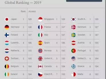 英国顾问公司“Henley & Partners”公布2019年第三季“最强护照指数”,新加坡凭借着189个免签国的超强功能,与日本、韩国并列全球第一!