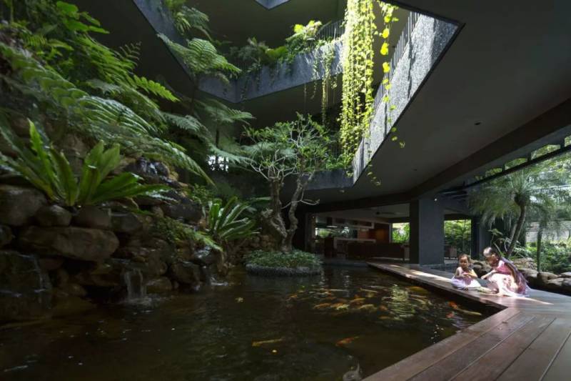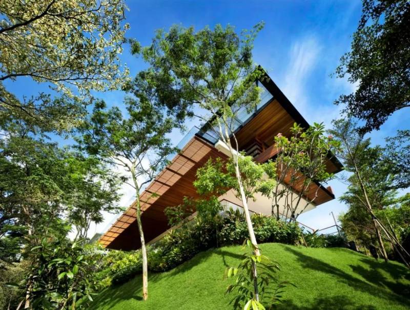 这套仙境般的洋房是由新加坡很出名的建筑设计公司Chang Architects经手建造的,据2015年海峡时报(Straits Times)报道称,这栋房子建造在一个斜坡上,超过1494个平方。