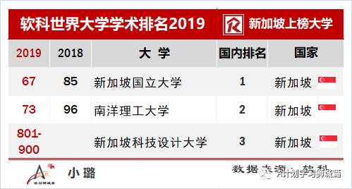 新加坡国立大学和南洋理工大学相比去年都有了很大进步,国大从去年的世界第85名上升至第67名。南大的学术研究近三年取得了最大进步,排名从去年的96名上升至73名,是该排行榜自2003年以来取得的最好的名次。新加坡科技设计大学也第一次挤进排行榜。