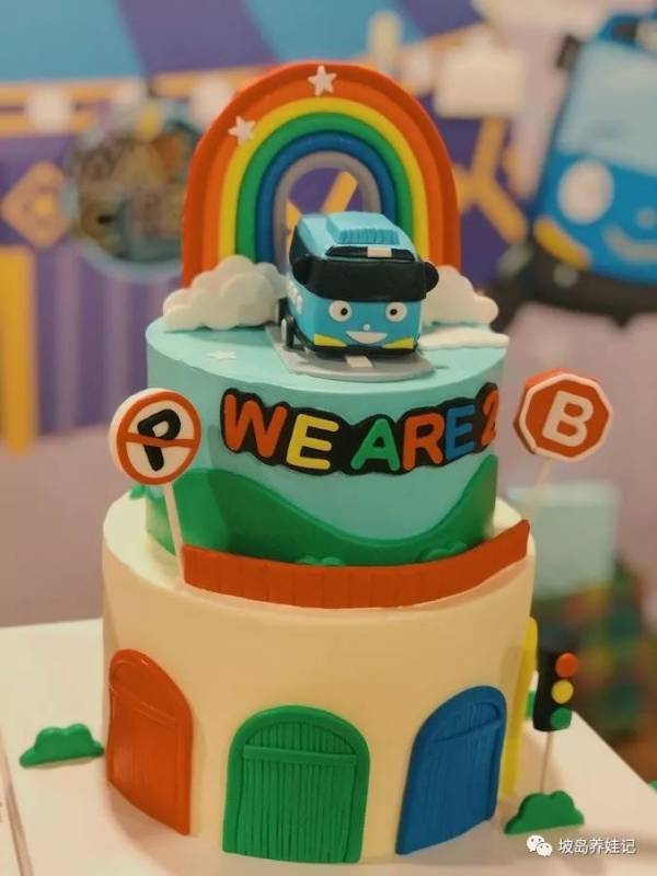 说实话,当时找到NANA,让她赞助我们一个蛋糕,并把想要的蛋糕图片发给她,并没有期待有多精致。在和她讨论汽车模型的时候,我因为没有TAYO巴士,想着直接做个彩虹,省去这个造型。没想到,她用手工制作了一个更精致的,口味也得到了一致好评。