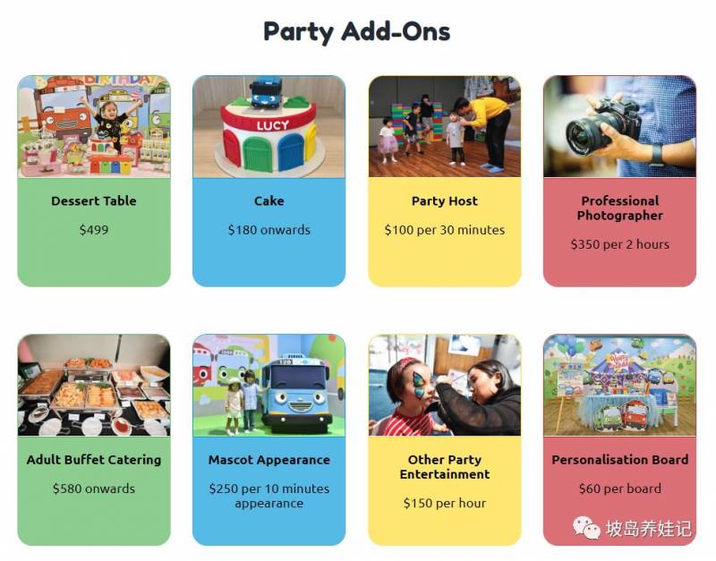 如果自己准备甜品台的话,可以选择左边$499平价的生日聚会版本。再配置一些需要的比如蛋糕,游戏主持人,摄影,自助餐等等额外的项目。但注意了,如果自己带带蛋糕和甜品的话,切记不能做成Tayo主题和其它出名卡通主题的(比如迪士尼,Elsa一类的),这些都是需要有Licensed的baker才可以(可以直接通过Tayo Station来定)。
