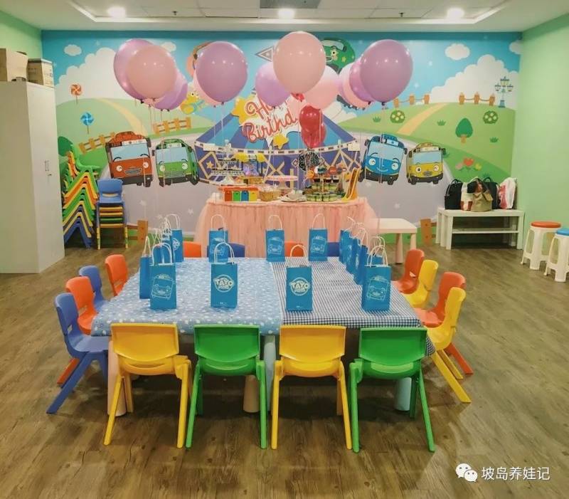 这次一共16组家庭,这空间倒是完全可以满足我们了。而一开门看到的可爱小椅子,气球带着的goodie bag,Tayo主题墙还有精致的甜品台,恩,大写的满意。