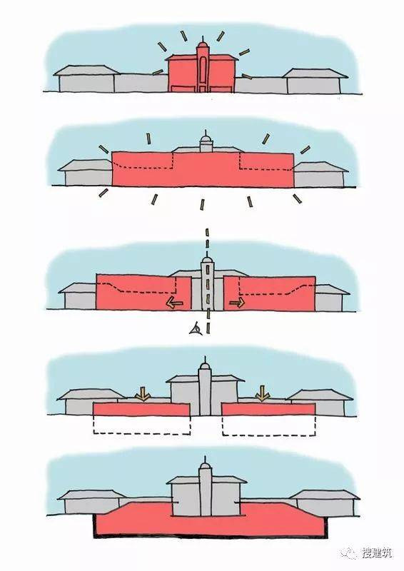室外空间整体增加,与周围环境的关系得到了改善,教室与户外紧密结合。