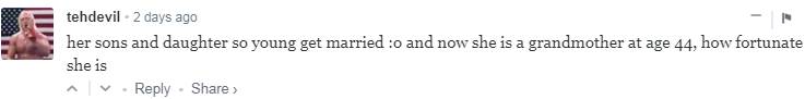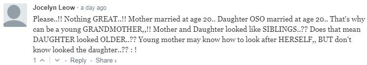 “拜托,没什么伟大的好吗!妈妈20岁结婚,女儿也20岁结婚,这就是她可以成为年轻奶奶的原因!......年轻妈妈们也许只知道怎么照顾自己,但还不知道怎么照顾女儿!”