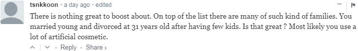 “没什么值得赞扬的,这样的家庭多了去了,年纪轻轻就结婚,31岁就离婚还带着几个孩子,这很棒吗?......”