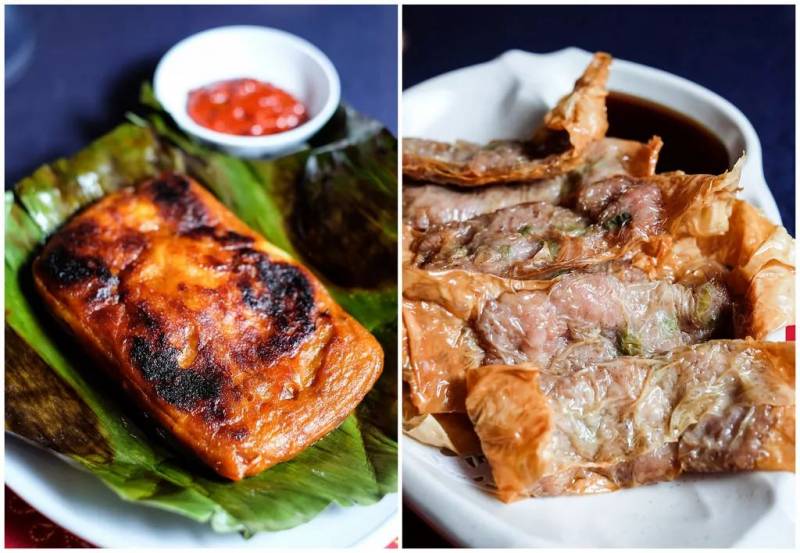 招牌菜:fried and salty ikan selar($15.9), scrambled egg-wrapped chinchalok($9.9)