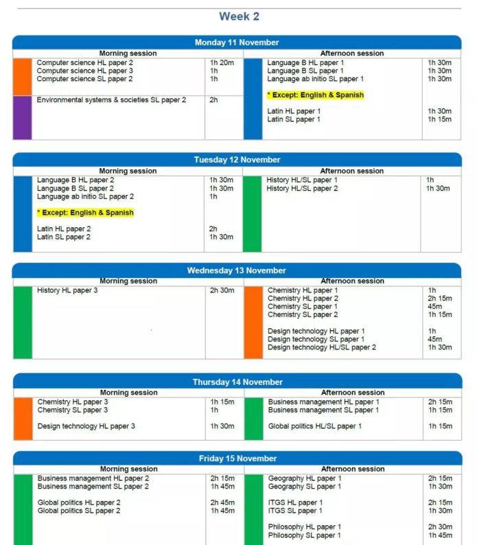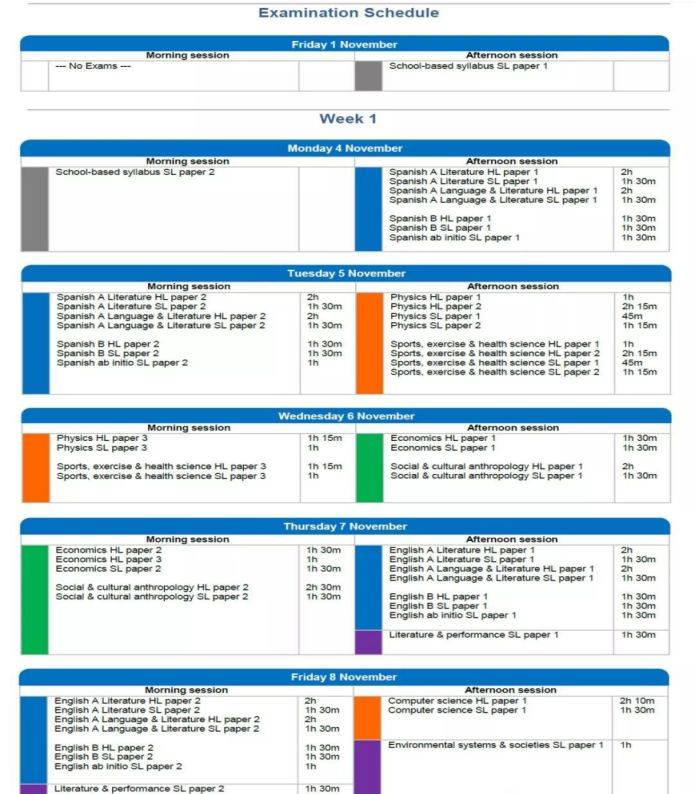 IB-DP每年有2次考试,分别在5月份(一般是北半球考生参加)和11月份(一般是南半球考生参加)。