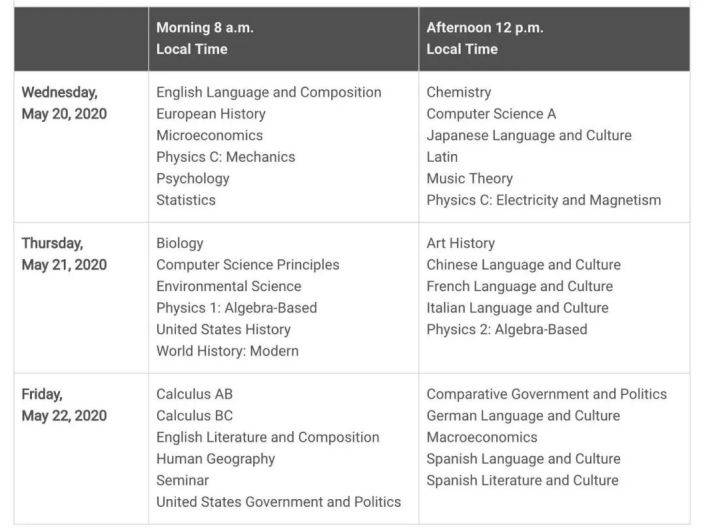 预备在 2020 年参加对应专业 AP 科目考试的同学,如果考虑报考这四个科目中的任何一科,就需要赴大陆之外的其他考场考试,比如,印度、香港、韩国、新加坡等。另外,原本 AP 考试的报名是在每年的 12 月进行,但从今年起,时间将提前至 9-10 月。