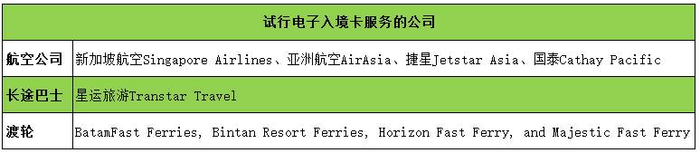 不过现阶段只有乘搭新加坡航空公司航班、BatamFast Ferries等特定航空公司、长途巴士和渡轮的旅客能使用这项服务。其余旅客还是需要填写白卡。