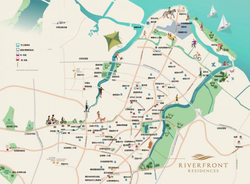 Riverfront Residences 所处区域后港(Hougang)属于新加坡发展较为成熟的区域,这里生活气息十分浓厚,拥有多个食阁以及购物中心,交通便捷,距离后港市中心仅900米左右,距离后港巴士转换站仅800米左右,毗邻后港、高文、万国三大地铁站,住户可搭乘地铁快速到达乌节路、牛车水等新加坡中心地带。