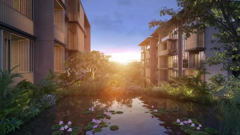 绿意庭从樟宜田园般的海滨环境中汲取灵感,唤起松宁静的氛围。它的设计趋向最新的生活方式即全面健康,因为我们试图在发展的主题中注入一种正念感”他说。