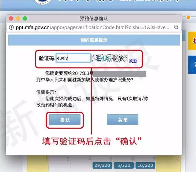 17.系统进行核对和验证,再次确认时间无误后,输入验证码。
