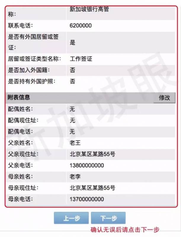 10.系统会出现之前所有步骤留下的信息,如有错误可以进行修改。
