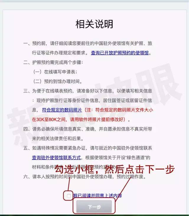 2.进入下一页,请仔细阅读后勾选小框。