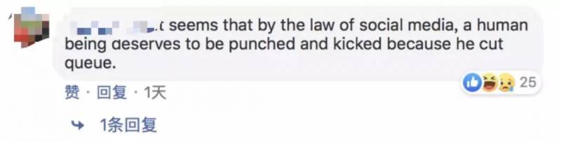 “这是社交媒体的新法令吗?插队者就应该被痛打?”