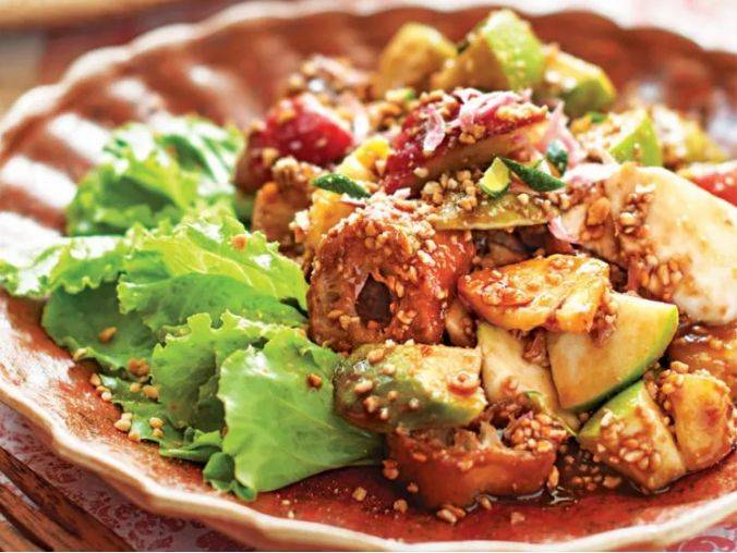 罗惹可以说是新加坡版的沙拉,由通心菜、豆芽、黄瓜、菠萝、青芒果等新鲜食材淋上由酿造的虾酱、糖、青柠和辣椒酱做成的酱汁制成,是一道十分酸甜开胃的美食。