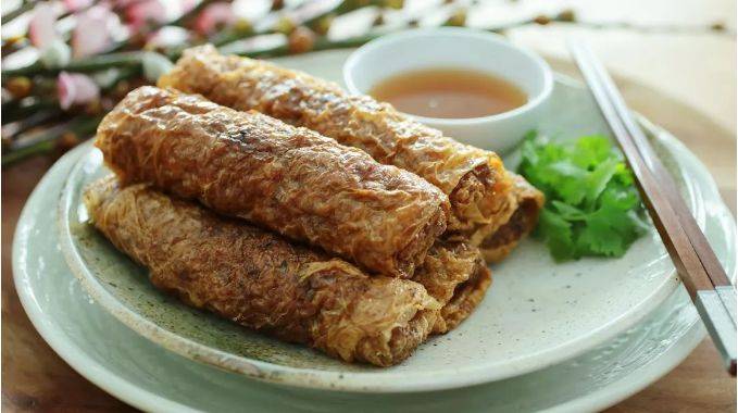 顾名思义,五香是一种用五香粉腌制的肉卷,源自福建和潮州菜,在新加坡街道上比较常见。内含碎荸荠,每一口都伴随着美妙的嘎吱声。