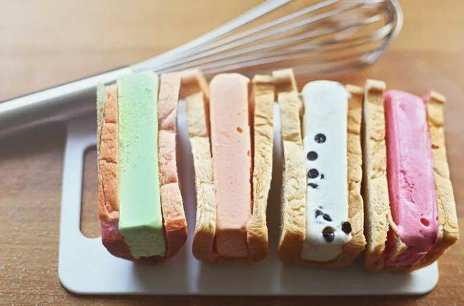 这种用吐司或威化饼夹着的冰淇淋大概是当地人童年时代最受欢迎的美食了,不仅便宜又好吃,彩虹色的外形也让人看着心情十分愉悦,拿在手里,仿佛回到了儿时那简单快乐的时光。