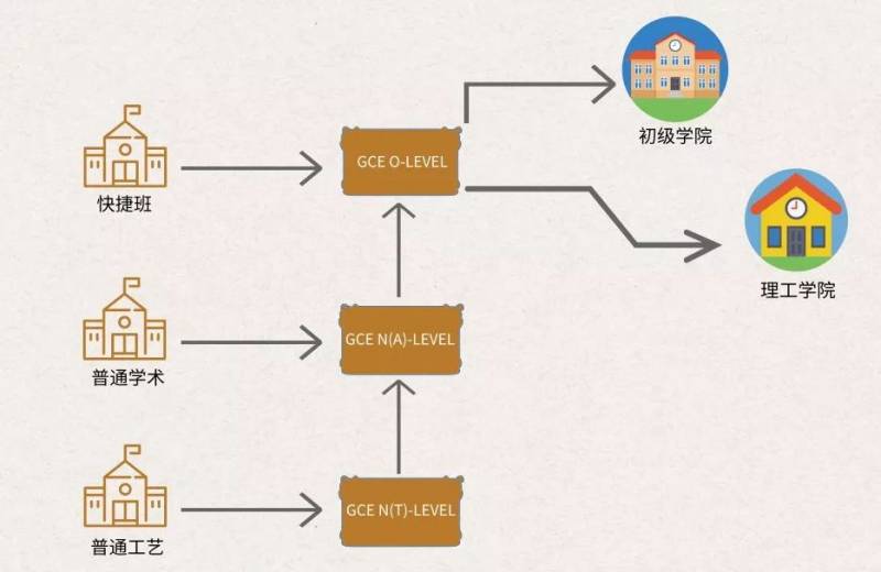 在政府中学就读的国际学生和新加坡学生一样需要通过GCE升学考试。快捷班的学生通过GCE O-LEVEL考试后可进入新加坡理工学院或政府初级学院继续学习,政府初级学院也就是我们所说的高中;而普通学术班学生要在中四通过GCE N(A)-LEVEL 以及中五阶段通过GCE O-LEVEL 考试后才能进入理工学院或初级学院。