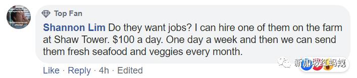 也有网民留言说,如果这对老夫妇缺钱需要工作,她想聘请其中一人到她位于邵氏大厦的农场工作。一星期一天,一天100元。每个月还能供应新鲜的海鲜和蔬果给他们。