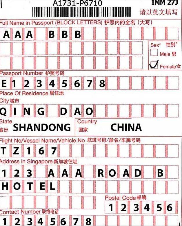 飞往新加坡的时候,在飞机上空姐一定会给大家发一个叫做白卡的东西,其实就是入境卡。