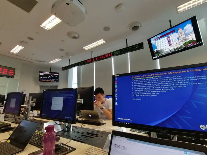 进入CAMRI实验室后,首先由Prof. Lee Hon Sing(李汉声教授)带着我们自己动手操作Bloomberg,包括调用函数从中获取股票信息、分析师报告等。