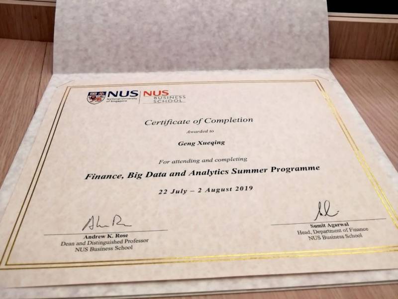 图文:耿雪晴(NUS2019金融与大数据分析暑期课程学员)