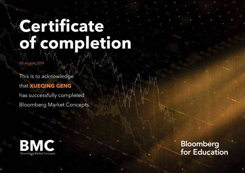 在进入CAMRI实验室之前,老师带我们注册了Bloomberg(彭博数据终端)在线学习的账号,通过10小时的在线学习,我们对于Bloomberg数据库和它的基本操作、功能都有了初步的认识。