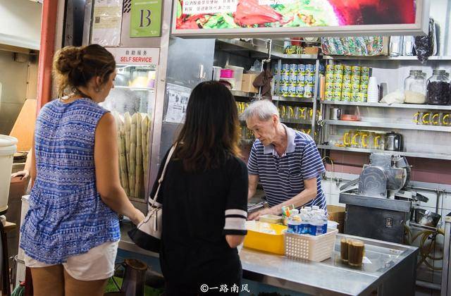 熟食中心的档主多为华人,粤语、华语、潮州话、福建话是主流语言。中心的饮品也很便宜,比如洛神花茶一新币一杯,鲜榨果汁一杯仅需要两新币。