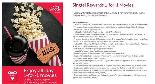 2.3 Singtel用户周四买一送一(仅限Handy Road的影院)