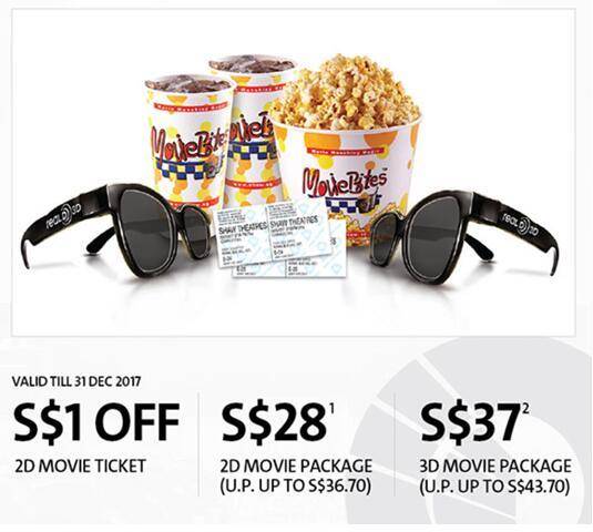 使用OCBC的小伙伴,可以花28新购买原价36.70新的2D电影套餐(包括两张电影票、两杯饮料和一桶爆米花);或者花37新购买原价43.7新的3D电影套餐(包括两张3D电影票,2副3D眼镜,2杯饮料以及一桶爆米花)