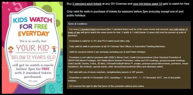 小夫妻拍拖想要带小孩,没问题!凡是2位家长购买正价影票就可以免费带小朋友(低于12岁)观影啦~仅限每日2pm之前的场次,公共假期的电影不在优惠中的哦