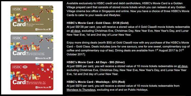 1.3 HSBC’s Movie Card 10张电影票低至70新