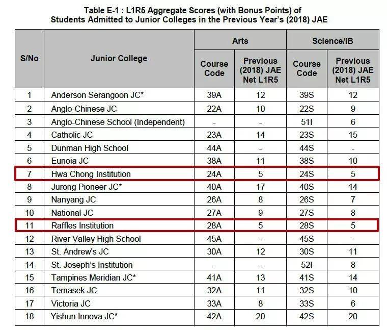 分数越少的人才能入读新加坡最优秀的JC,带大家看看最近一次O水准考试的择校分数线: